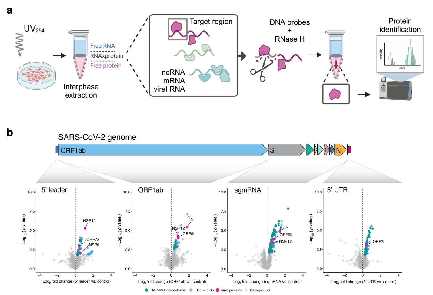 - Schmidt N, Lareau C, Keshishian H, Ganskih S, Schneider C, Hennig T, Melanson R,Werner S, Wei Y, Zimmer M, Ade J, Kirschner L, Zielinski S, Dölken L, Lander ES,Caliskan N, Fischer U, Vogel J, Carr SA, Bodem J, Munschauer M. The SARS-CoV-2RNA-protein interactome in infected human cells. Nature Microbiology (2021) 6, 339–353. https://doi.org/10.1038/s41564-020–00846‑z
